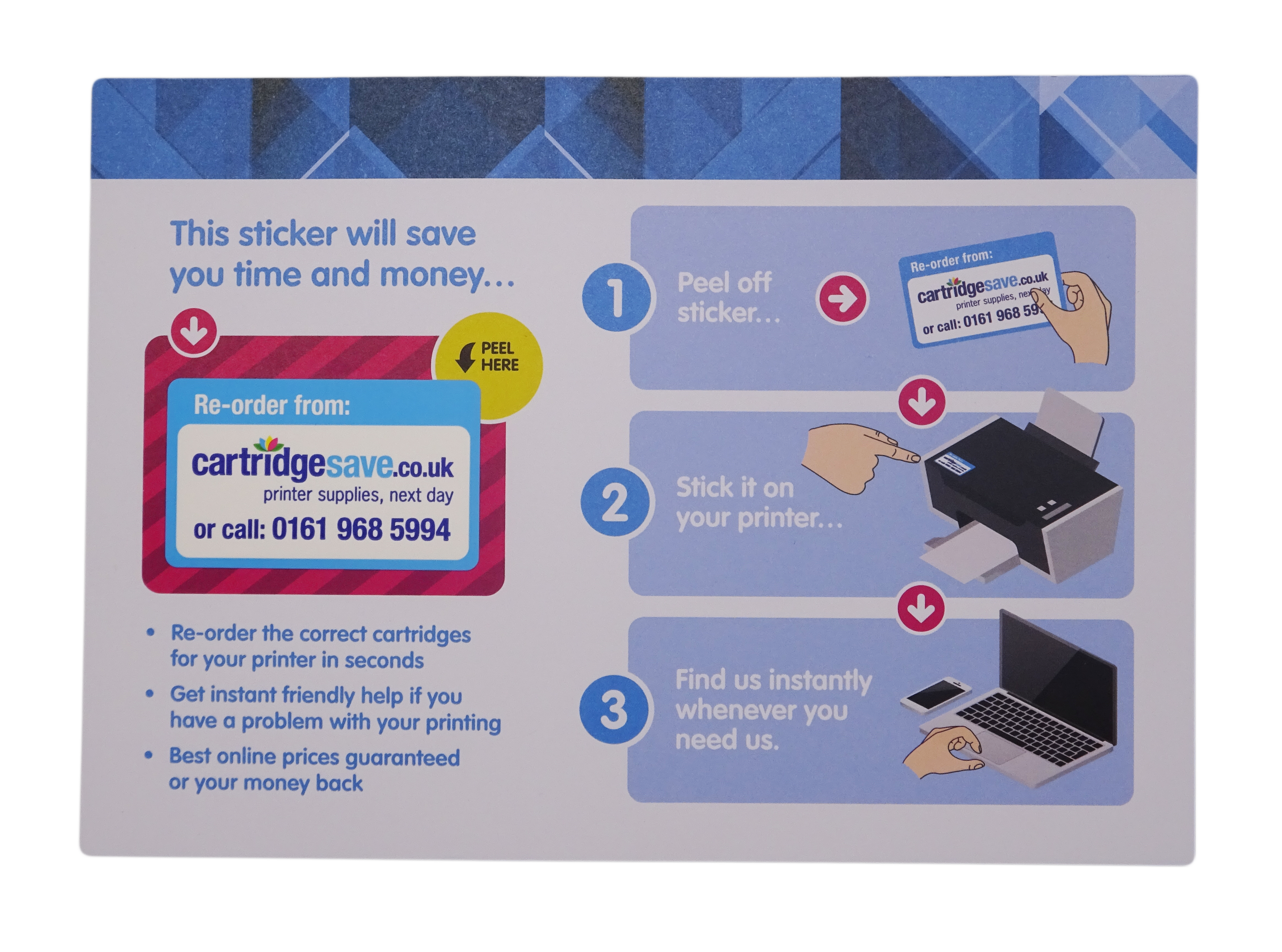 | The plastic sticker and card surround are made in a "Zero to Landfill" factory. The card surround is made from paper from an FSC sustainable source. It is also part of a carbon capture scheme run in conjunction with the Woodlands Trust to plant indigenous trees in the UK to offset any carbon generated in making the paper. The printer sticker is made from Polyethylene Terephthalate (PET). To recycle, separate the plastic sticker from the card. The card is suitable for disposal in curbside paper recycling provided by your local authority. Although the plastic sticker is made from PET which is the most widely recycled plastic globally, some councils will not collect this type of plastic at the curbside. Please check with your local council's domestic curbside recycling guidance for further instructions on how to recycle in your local area. |